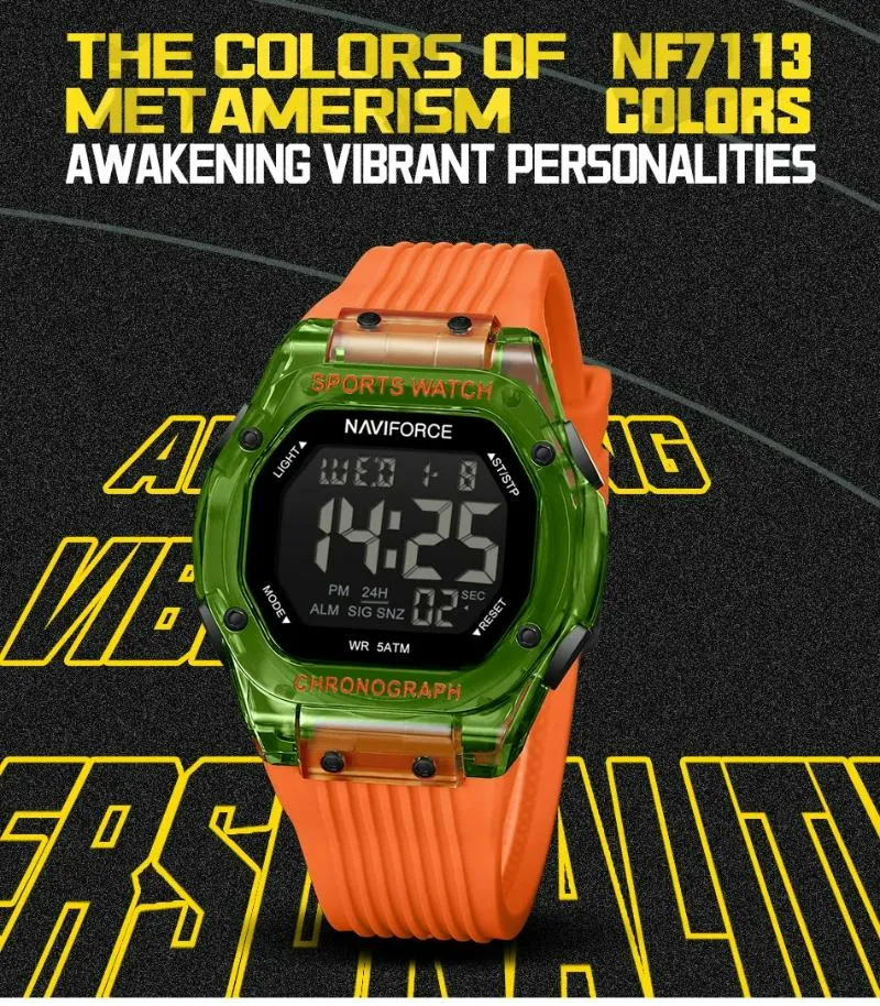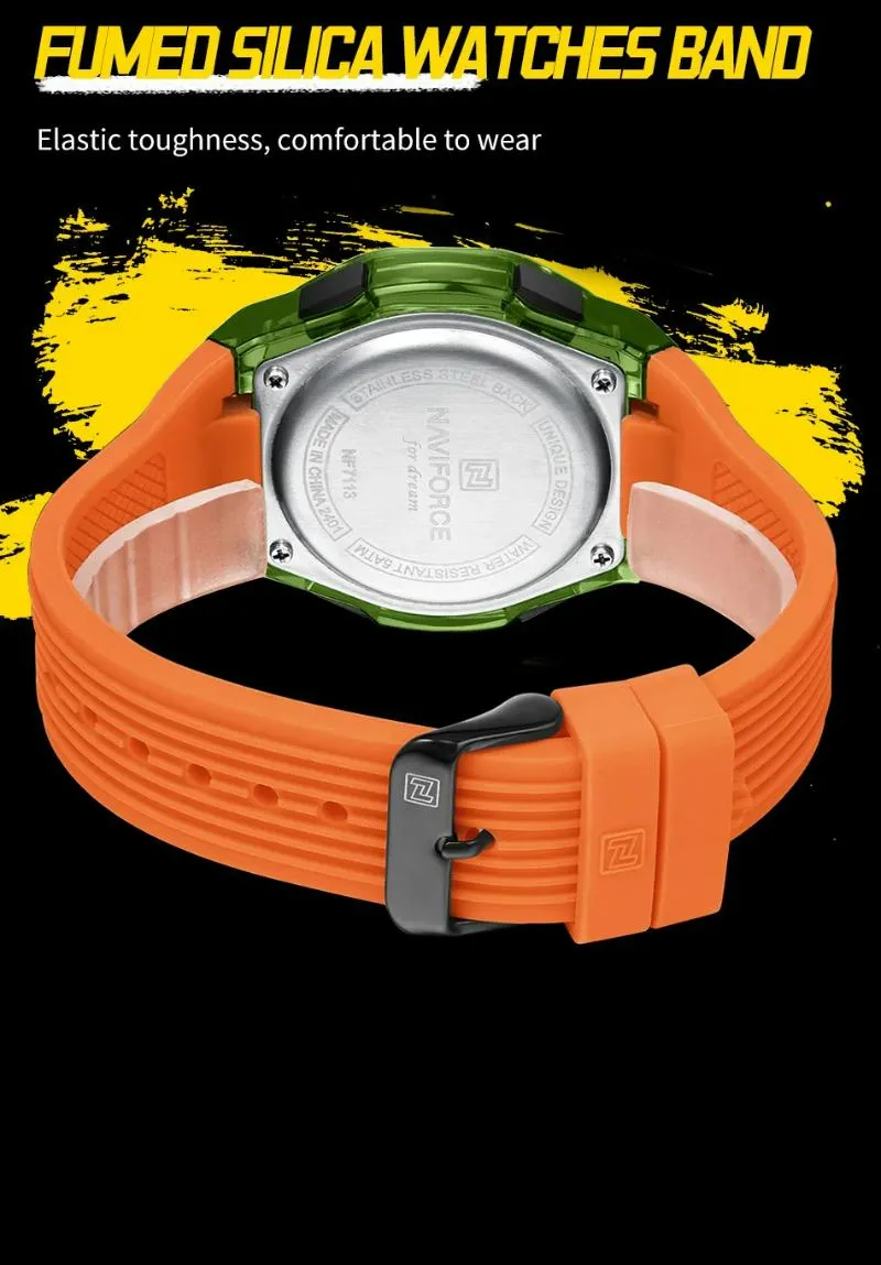 Be the first to review “NaviForce NF7113 Men’s Fashion Polygonal Dial Digital Multifunction Silicon Strap Watch – Light Grey”