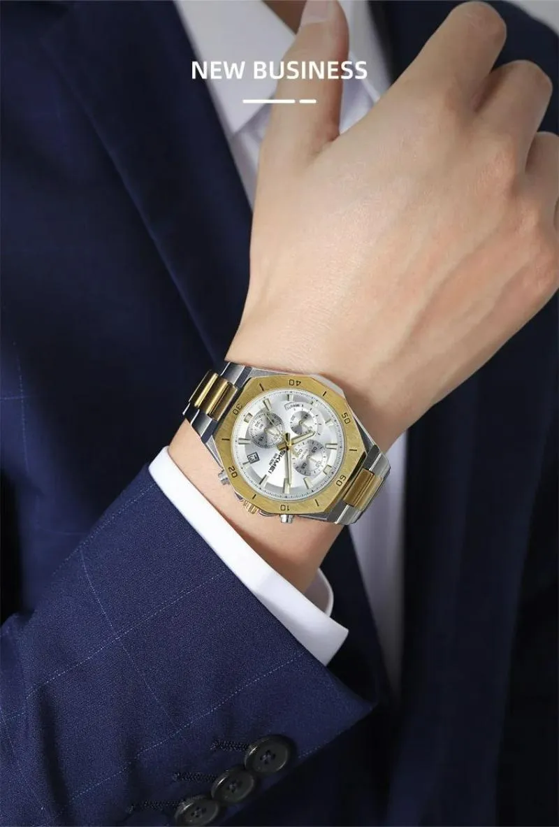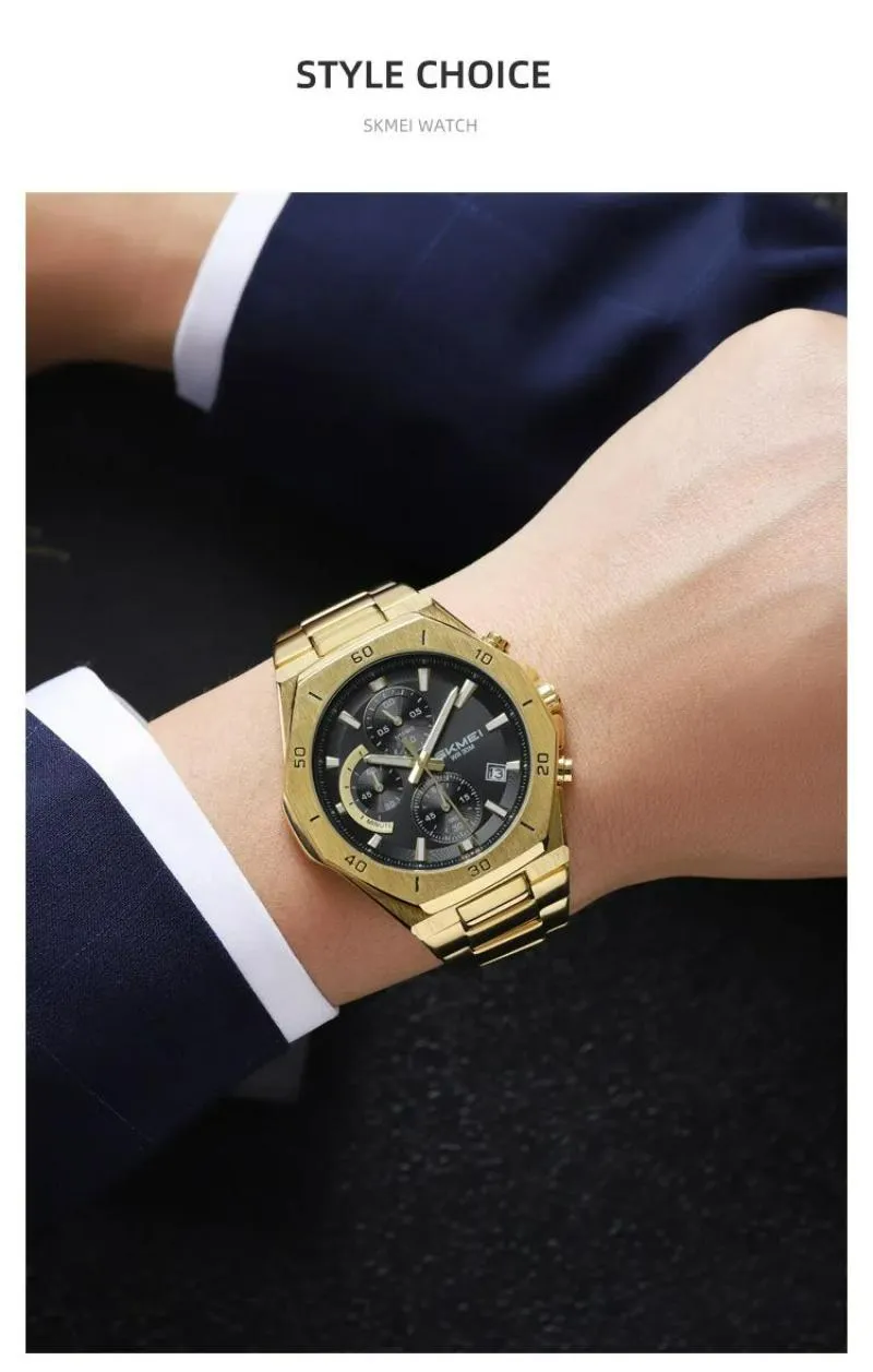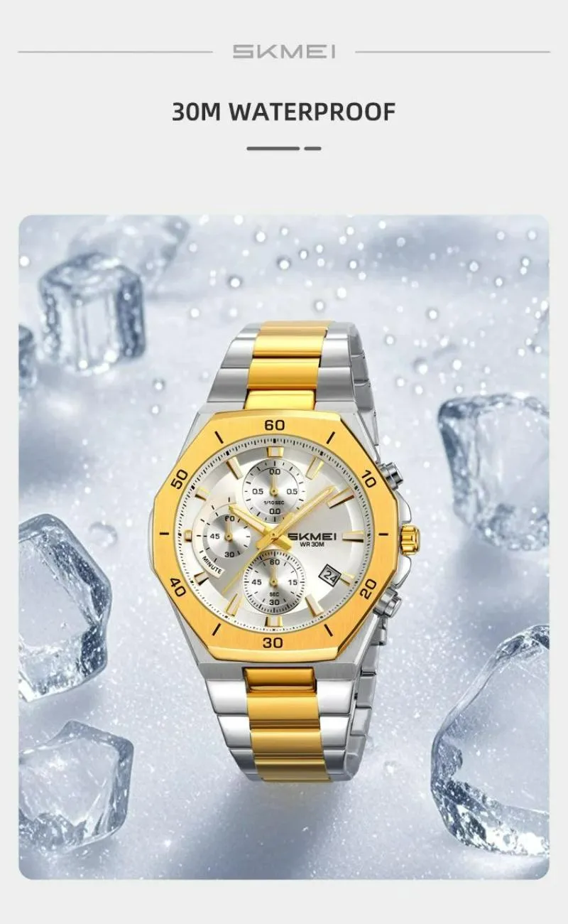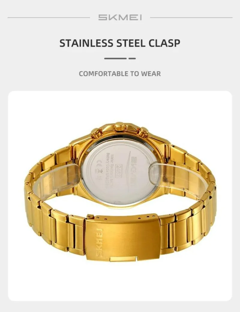 SKMEI 2452 Men’s Classic Chronograph Stainless Steel Luminous Date Display Quartz Watch – Golden