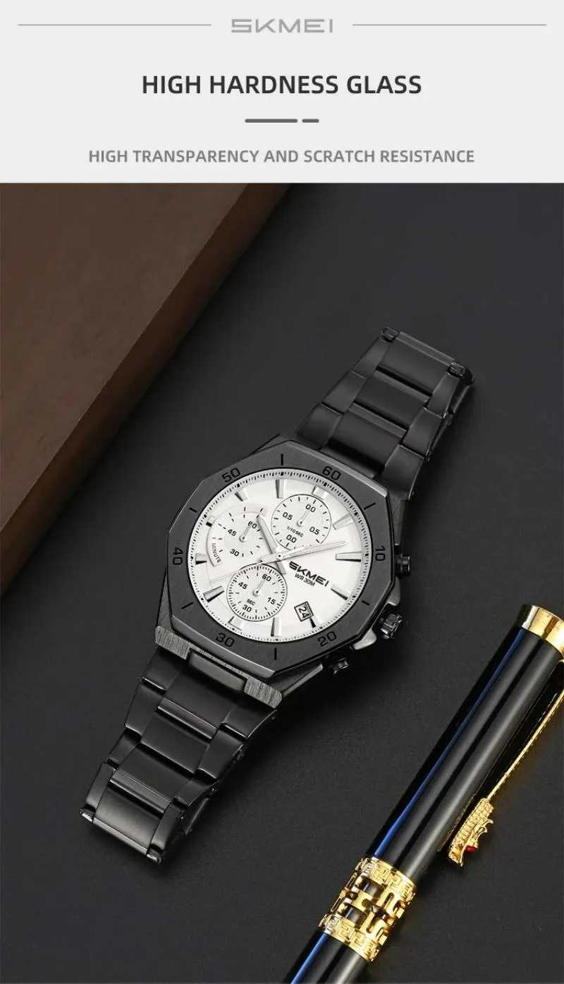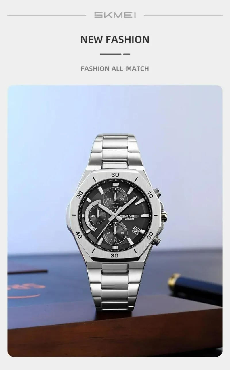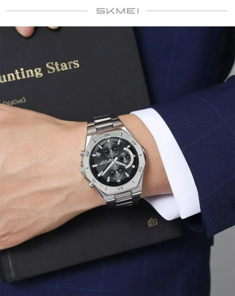 SKMEI 2452 Men’s Classic Chronograph Stainless Steel Luminous Date Display Quartz Watch – Golden